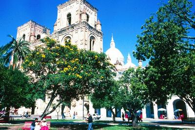 pink marble façades and magnificent sky-blue domes of the Catedral de la Inmaculada Concepción (New Cathedral) overlook