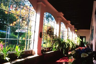 Adjoining the main house, passing by the family chapel, are what were once the store rooms where the produce of the hacienda's vast lands were brought. They've now been converted into vast dining and living rooms with huge hearths and echoing ceilings. The garden at the back of the house is crowded by clusters of huge royal palms, with paths leading round a small man-made lake, a 20th century addition. Around the lake graze three or four timid lamas, and beyond them some of the majestic steeds of the Freiles.