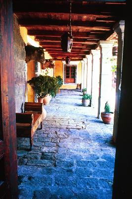 The oldest hacienda in Ecuador, Hacienda Guachalá, lies northeast of Quito, near the town and volcano of Cayambe. It looks like a movie set for a costume drama unfolding at the time of the conquistadors. A wide, cobbled courtyard sprouting a few weeds and wild flowers is overlooked on one side by a covered arcade that is used as a dining area. The white walls of the long corridors in the low-lying, rustic mansion are decorated with stag heads, riding tackle, native weavings and old photographs. There's even a fascinating archive of 400 black-and-white photographs taken by the owner Diego Bonifaz's grandfather at the beginning of the twentieth century. Not to be outdone by La Ciénaga's chapel, Guachalá offers two. The first one had been eternally desecrated when used for a profane party, so a second had to be built.