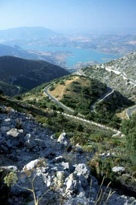 | To the west and southwest of Ronda lie some of the province's famous small hill towns. Zahara >> is one of the most dramatic, with a Moorish castle eyeing the countryside for miles around. South of Zahara, the Grazalema National Park makes a stark and impressive backdrop to some great roads for driving, and trails for hiking. | ![]() |