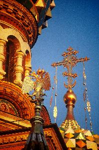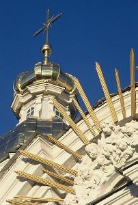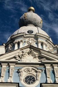 Cherubs, sun bursts and cupolas of the St Nicholas Cathedral |